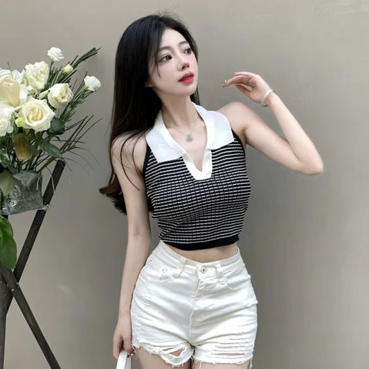 Women Summer Y2K Tank Tops Strapless Knitted Crop Top Sleeveless Backless Sexy Vintage Corset Top