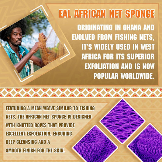 2 Pieces African Net Sponge – Real Authentic Exfoliating Bath Sponges for Silky Smooth Skin, Deep Cleansing Mesh for Full Body, Quick-Drying & Travel-Friendly (Purple Rose)